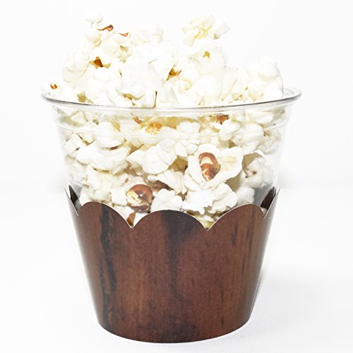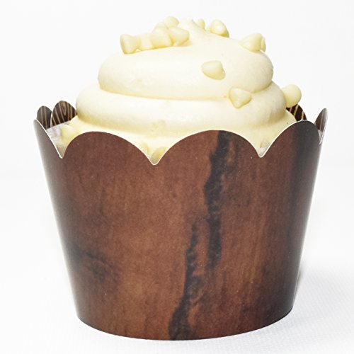 - The hand-designed faux-bois pattern and rustic wood grain look will take your event to the next level. These wrappers are a quick and easy way to decorate cupcakes to fit your theme or party. No need for colored frostings and elaborate toppers, simply skirt your cupcakes and make a stunning cupcake tower in minutes with ordinary cupcakes from your bakery or homemade.