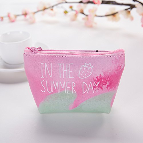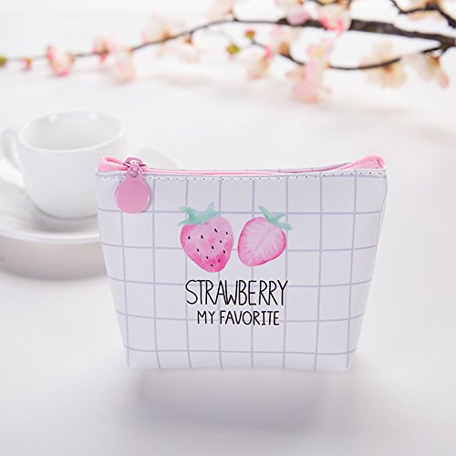 Studio : Miunyeh Publisher : Miunyeh Binding : Apparel Product Description Material:PU leather Pattern:fruit Bag shape:inverted trapezoid Popular elements:printing Opening way:zipper Applicable gender:Neutral / men and women can be Internal structure of the packet:small change bit Length:Short paragraph Hardness:Medium soft Lining texture:polyester Suitable for occasions:opening ceremony, awards ceremony, wedding, business gifts, advertising promotions, public relations planning, fairs, employee benefits, housewarming Style:Adult purse Color:a strawberry, two strawberries, multiple strawberries, pink green color