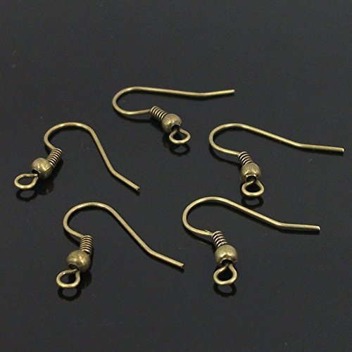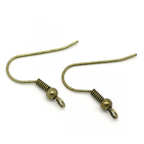 Antique Brass Bronze Fish Hook Earring Ear Wires with Bead & Coil- Nickel Free- Earring Jewelry Making 18mm / 1