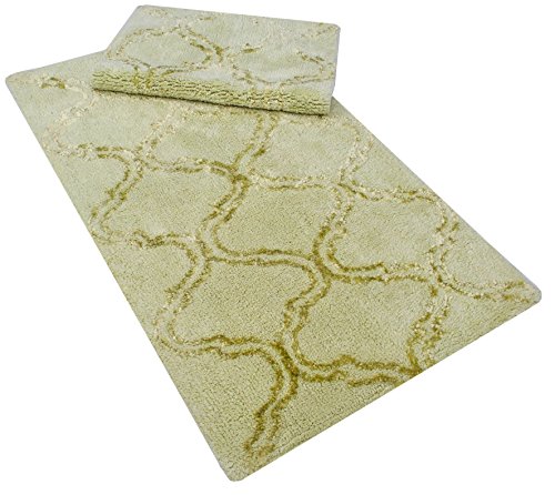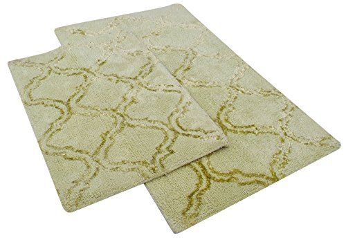 Trellis / Quatrefoil Design Bathroom Rugs With Sage Color theme. Perfect for use in bathroom and kitchen area