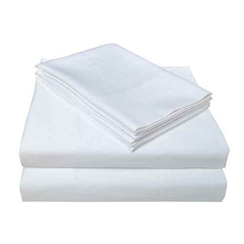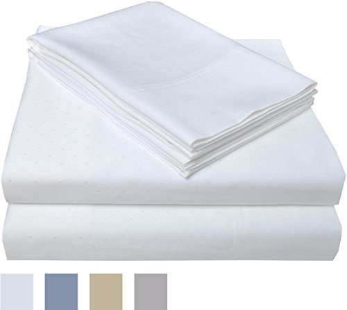 400 Thread Count 100% Premium Combed Cotton Swiss Dots Bed Sheet Set, Queen, White