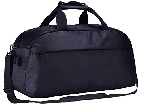 -. Feature : Super Lightweight Duffel ---- MIER gym bag is made of high grade & deluxe fabric, which is lightweight (1.65lb) but tough and durable; Quality brand zip "SBS" be used for extra smooth and robust / Multifunctional Pockets ---- 1 roomy main compartment with two-way zipper closure, 1 inner zippered pouch storing for valuables, 2 inner open pockets with velcro fastened, 2 external side open pockets, 1 front useful and quite spacious compartment with zipper closure / Spacious Sports Duffel ---- Main compartment size is 24.8"*9.8"*12.6", plenty of place to fit you need inside with ease, large enough for short trip travel, workout, camping, hiking, indoor/outdoor activities, a week away and etc / Variety of Carry Options ---- Adjustable/Detachable padded shoulder strap can adjust from 35"-57"; A couple carry handles with leather wrapped top for easy grip and lifting; 2 side haul handle for easy carrying / Special Design ---- Bottom and two side padded thick, soft and strong foam, protect your stuff from dirt and wet. Shell material is easily wiped down and therefore not stain. Solid stitching reinforcement on all stress points