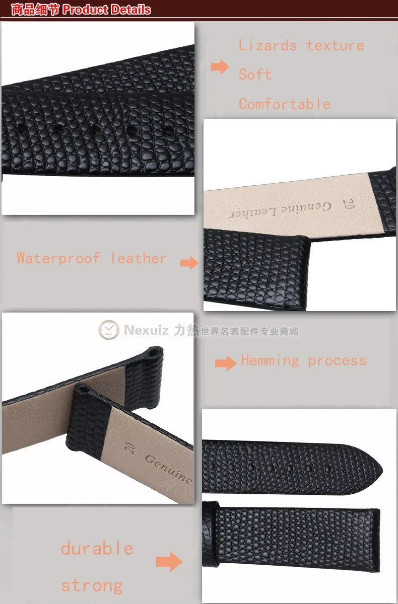 상품 내용 블랙 가죽 손목 시계 골드 스틸 버클 배포 20 미리메터 22 미리메터 악어 곡물 소 가죽 스트랩 팔찌 시계