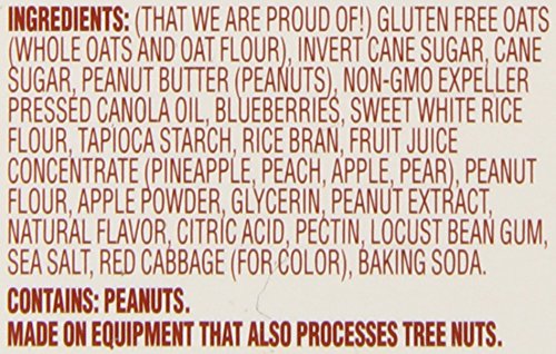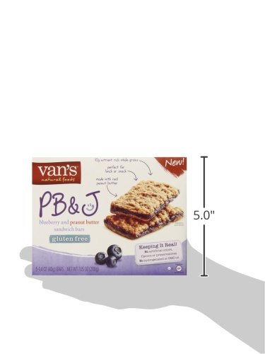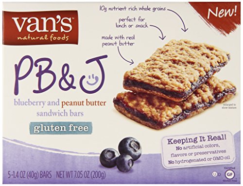 -. Feature : When you're in need of a snack, Van's blueberry and peanut butter sandwich bars are unbeatable / On one side, savory real peanut butter, on the other, natural blueberry filling / Every serving packs 10 gram of nutrient-rich whole grain oats and real peanut butter / Gluten free