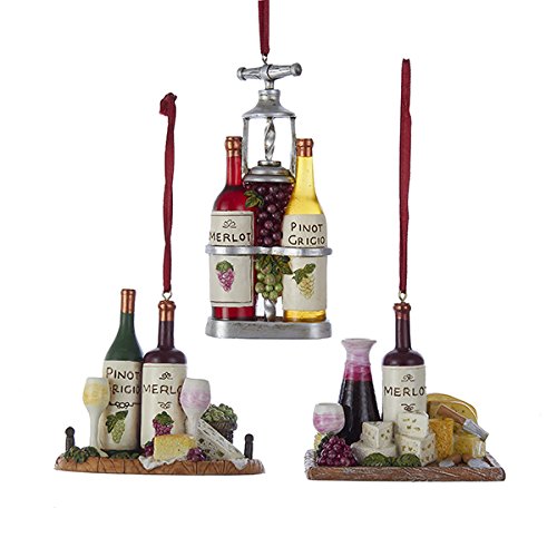 Kurt Adler WINE AND CHEESE TRAY ORNAMENT - 3 ASSORTED: 2 EACH MERLOT/PINOT GRIGIO AND 1 EACH MERLOT