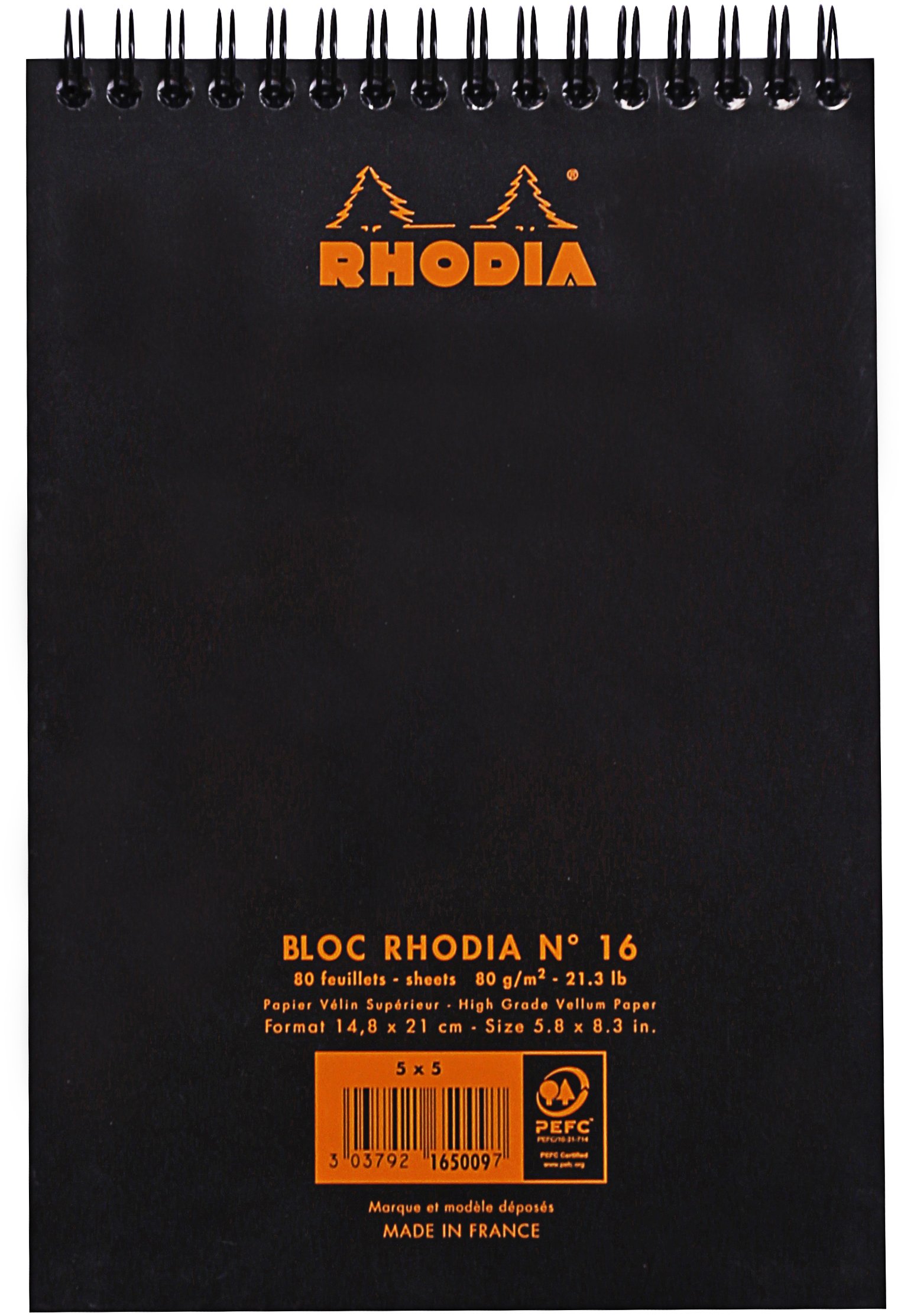 Rhodia Wirebound Pad 6X8.25 Black Grid