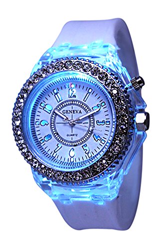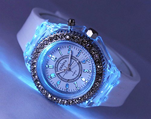 White Geneva Quartz Flashing Light up Color Changing LED Silicone Jelly Watch