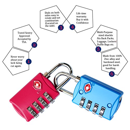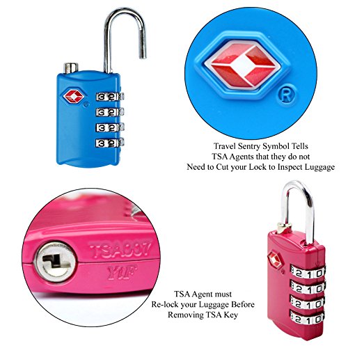 TSA Approved Luggage Locks 4 Digit Combination theft Protection on Our Durable Heavy Duty Travel Baggage Lock, Padlock and Suitcase Lock (Multi color 4 Pack) ¡Â