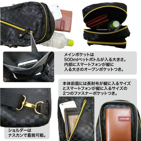 ブロックチェック柄のボディバッグです。