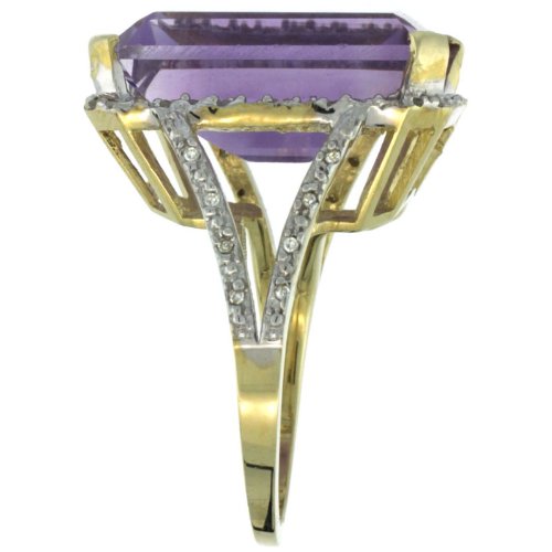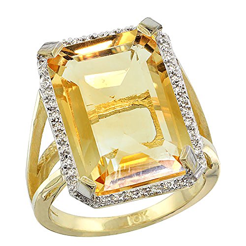 -. Title : 10K Yellow Gold Diamond Natural Citrine Ring Emerald-cut 18x13mm, sizes 5-10