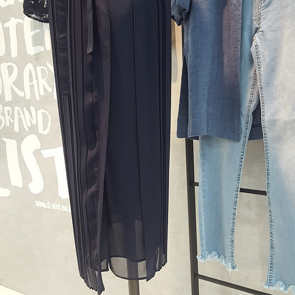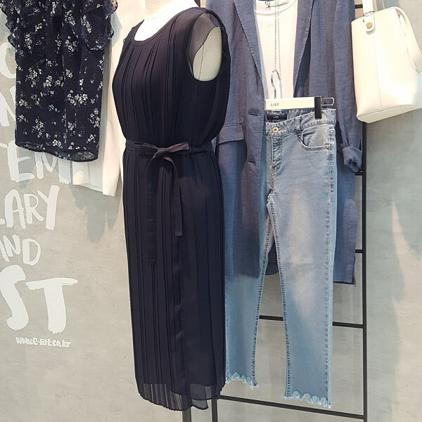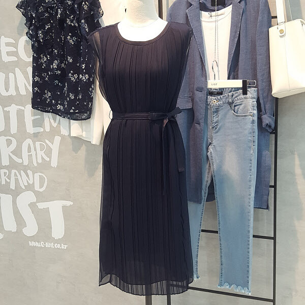 심플한 라운드형의 깔끔함과 하늘거리는 소재의 플리츠주름이 멋스럽고 세련된 느낌을 주는 원피스입니다