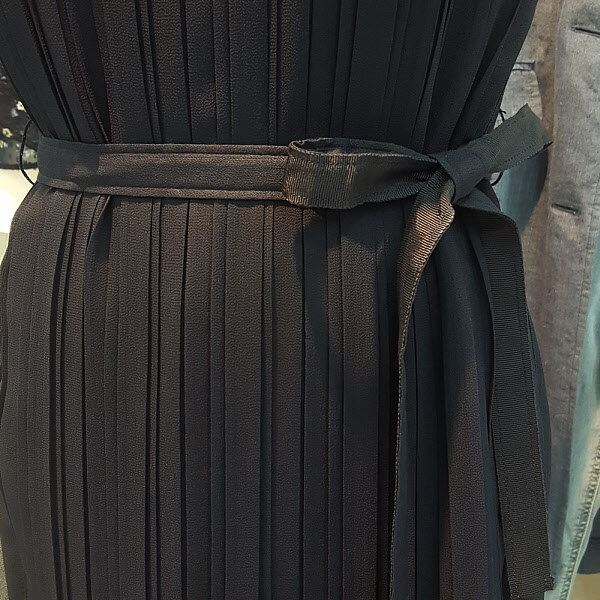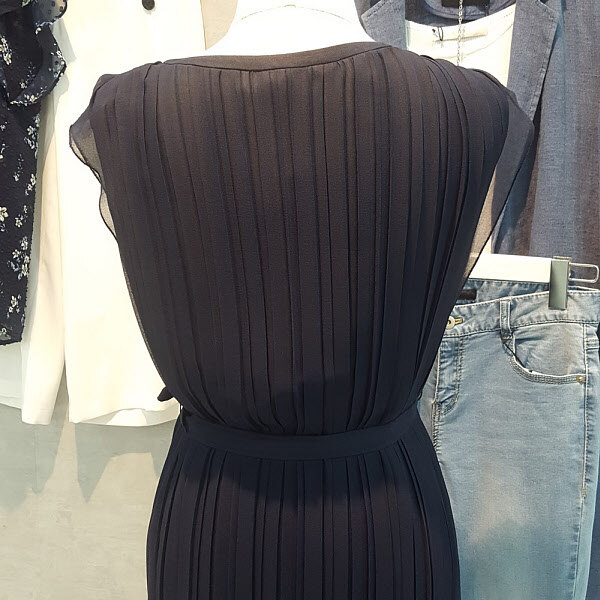 전체적인 플리츠주름 포인트가 여성스럽고 페미니한 무드의 원피스입니다