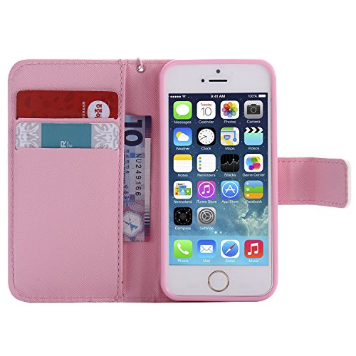 Feeltech iPhone 5/5S/SE Hulle PU-Leder und Brieftasche Bunte Muster Fall mit Magnetverschluss, Hybrid-Kickstand mit Stand-Funktion, schlagen Sie schutzende weiche TPU Stossstangenab