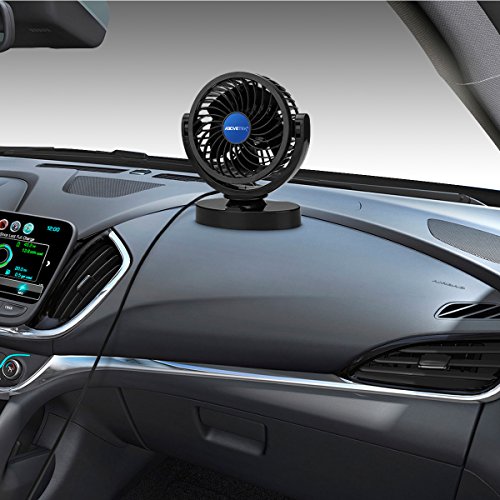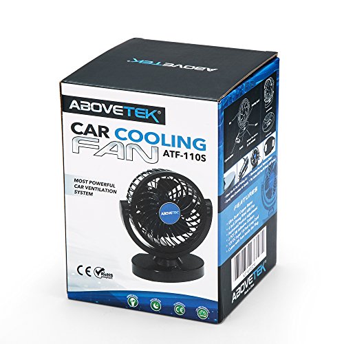 AboveTEK 12V DC Car Cooling Fan - 10ft Cord Strong Quiet Air Circulator Blowing Away Hot Air Bad Odor Smoke Defrost Windshield - Kids Safe Rotatable 4 inch Electric Dashboard Armrest Ventilation Fan