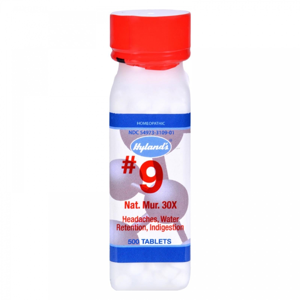 | Hyland's No.9 Nat. Mur. 30x Description: Headaches Water Retention Indigestion Relief of symptoms of headaches, constipation, heartburn, toothache, hayfever, water retention in women. Relief of symptoms of gastric upset and distress. Disclaimer These statements have not been evaluated by the FDA. These products are not intended to diagnose, treat, cure, or prevent any disease. Size : 500 TAB Pack of : 1 Product Selling Unit : each |