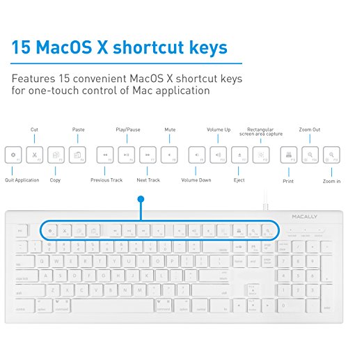 Macally 104 Key USB Wired Keyboard with Apple Shortcut Keys and 3 Button USB Optical Mouse Combo for Mac and Windows PC (MKEYECOMBO)