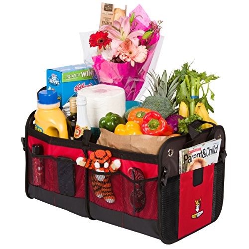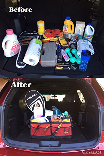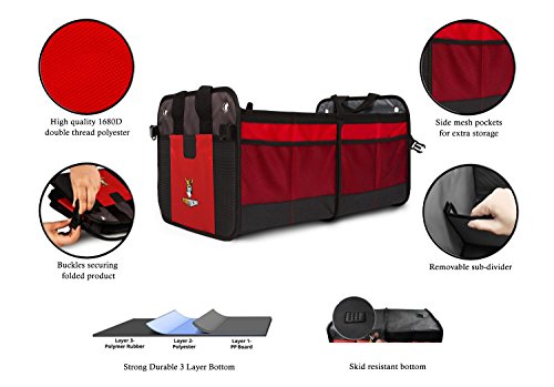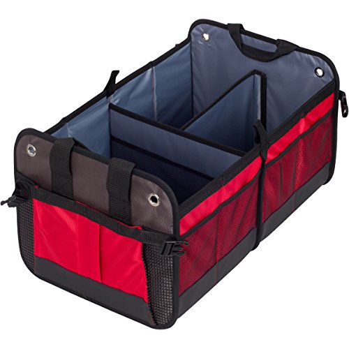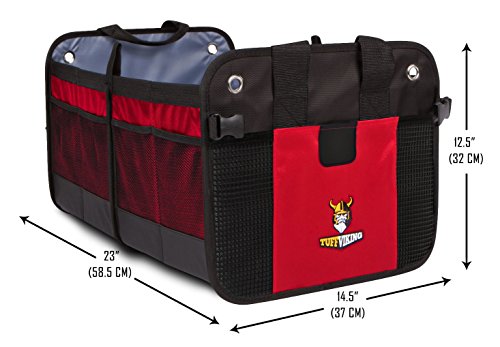 Premium Auto Trunk Organizer- Car Organizer by Tuff Viking® for Car Truck with Removable Divider,Extra Side Pockets,Collapsible, Reinforced Bottom, and Waterproof Interior (Red) B01CT7X9RC