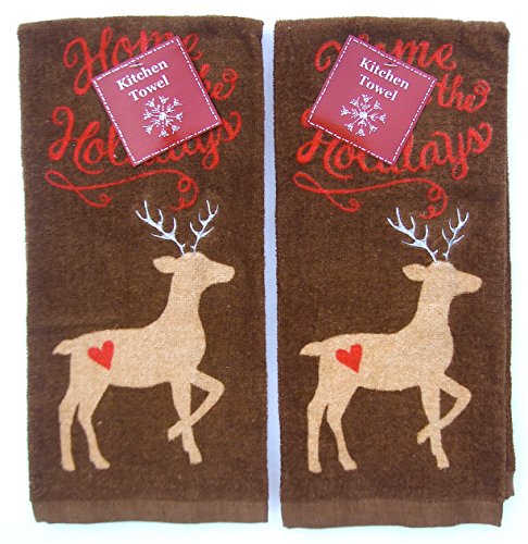 - Celebrate Being Home For The Holidays with These Soft Deer Themed Dish Towels. The Deer have Unique Designs including the Heart and Silver Embroidered Antlers.