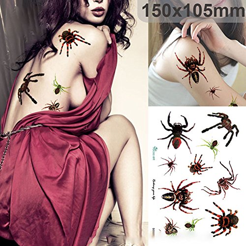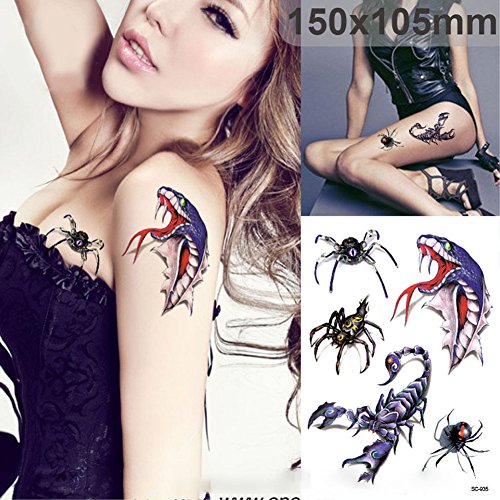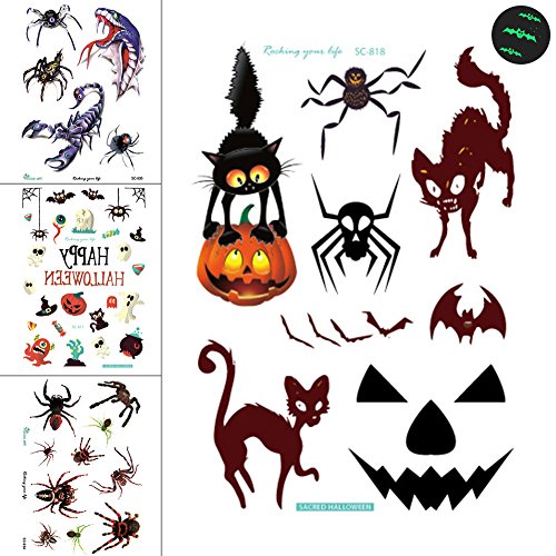 Halloween Tattoo Stickers 4 Pack Get 1 Free Luminous Sticker as a Gift, Spider Tattoos Temporary Scorpion Stickers Water Transfer, 4 CT Tattoo Sticker for...