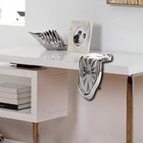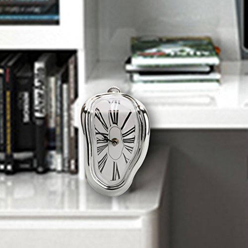 -. Binding : Kitchen -. Brand : Generic -. EAN : 0795410352428 -. Feature : Fashion and modern clock for rooms,Plastic material, glossier, add a modern flavor to your home. / Decorate your home in your own way with this creative time clock!Easy to install and durable to use / Material: Plastic / Power: 1* AA battery (not included),Size: 18 * 12 * 5cm / Color: Silver -. Label : Timego -. Manufacturer : Timego -. MPN : 795410352428 -. PartNumber : 795410352428 -. ProductGroup : Home -. ProductTypeName : HOME -. Publisher : Timego -. Studio : Timego -. Title : Generic Novelty Creative Modern Melting Clock Melted Illusion Warp Clock Sits on Shelf Funny Creative Home Room Decor Silver -. UPC : 795410352428