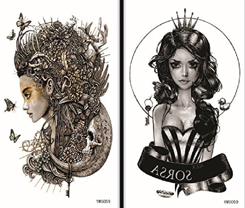 GGSELL GGSELL waterproof and non toxic 2pcs temporary tattoos in one package, it's including trial girl with flying butterflies and fashion girl temporary tattoos