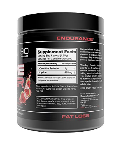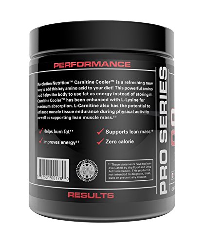 -. Binding : Health and Beauty -. Brand : Revolution NutritionTM -. Feature : Revolution NutritionTM Carnitine CoolerTM Is A Refreshing New Way To Add This Key Amino Acid To Your Diet! This Powerful Amino Acid Helps The Body To Use Fat As Energy Instead Of Storing It. Carnitine CoolerTM Has Been Enhanced With L-Lysine For Maximum Absorption. L-Carnitine Also Has The Potential To Enhance Muscle Tissue Endurance During Physical Activity As Well As Supporting Lean Muscle Mass. -. ProductGroup : Health and Beauty -. ProductTypeName : HEALTH_PERSONAL_CARE -. Title : Revolution Nutrition Carnitine Cooler - Watermelon