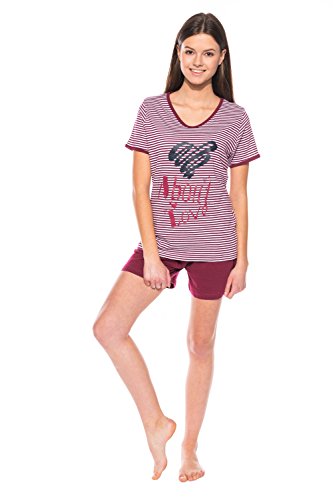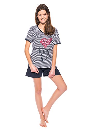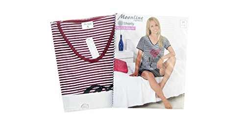 -. Binding : Textilien -. Brand : Moonline nightwear -. Department : Damen -. Feature : Stilvoller und hochwertiger Damen-Pyjama / Schlafanzug / Hausanzug aus 100% Baumwolle der Marke Moonline nightwear. / Trendiges Oberteil mit garngefärbten Streifen in Marine oder Rot, mit hübschem Motiv-Druck auf der Brust und niedlichem V-Halsausschnitt in Kontrastfarbe. / Kurze Hose unifarbig im passenden Marine oder Rot. / Zwei hübsche Styles zur Auswahl. / Single-Jersey aus 100% Baumwolle. -. ProductGroup : Apparel -. ProductTypeName : SLEEPWEAR -. Title : Moonline stilvoller Damen-Pyjama Schlafanzug Hausanzug gestreift mit tollem Motiv-Druck, 100% Baumwolle