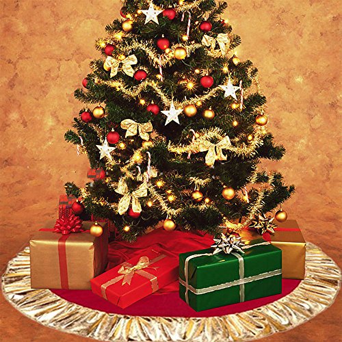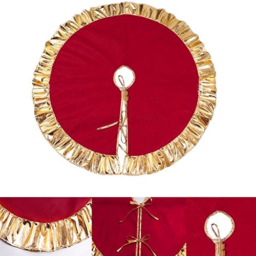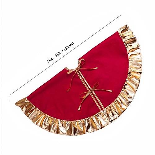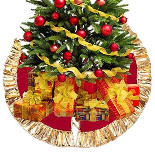 Christmas Tree Skirt Newbee 35.5inch with Golden Burlap Round Trim for Christmas Party Decoration - Red (Red)