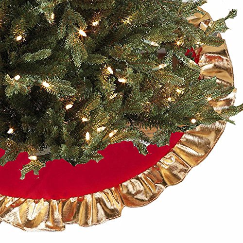 - This tree skirt is best to protect your floor and easy to wrap around an artificial or real tree truck and secures with two red ribbons.