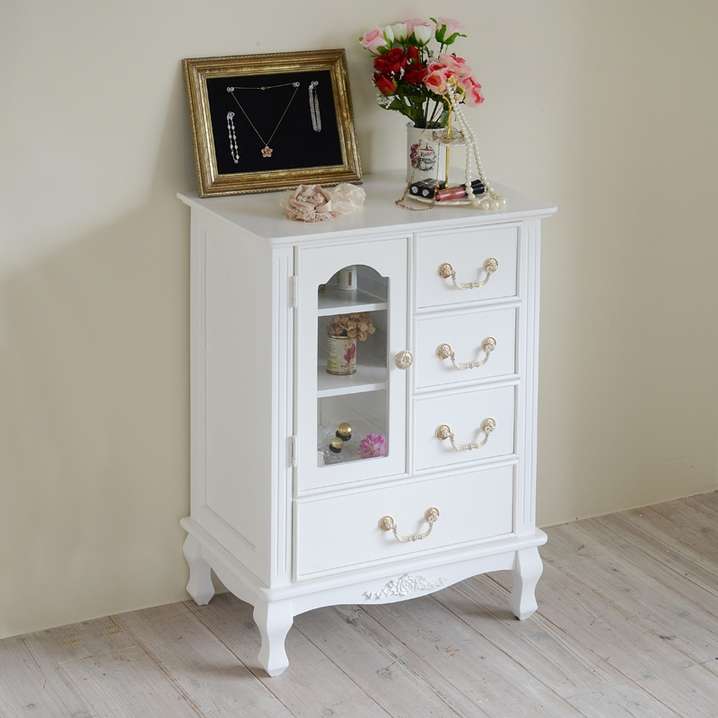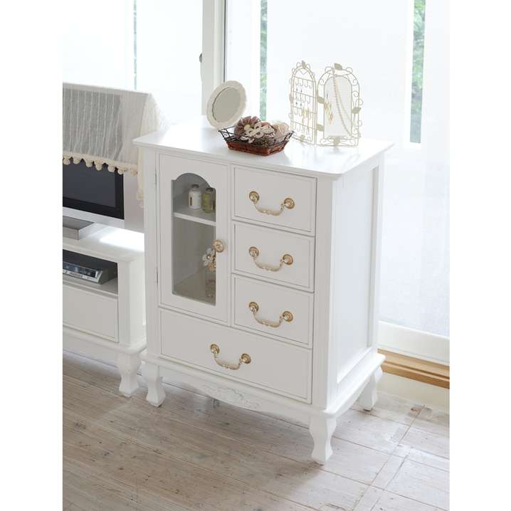 ●花のレリーフ、かわいい猫脚、ゴールドの取っ手がお姫様な、キャッツプリンセスシリーズのチェストキャビネット