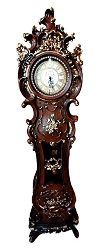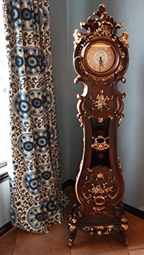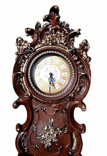 Studio : Atlantic Collectibles Publisher : Atlantic Collectibles Binding : Kitchen Product Description This grandfather clock boasts of excellent curvaceous design with vintage flower petal top. It is made of polyresin, hand painted and polished in mahogany wood color finish. It has a swinging pendulum in the body and you can set the chime to go off in two settings; Day time only or 24hr. Select from 3 musical tunes. You won't find a better deal than this anywhere online! 0