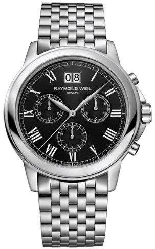 -. Title : Raymond Weil Tradition Chronograph Black Dial Stainless Steel Mens Watch 4476-ST-00200