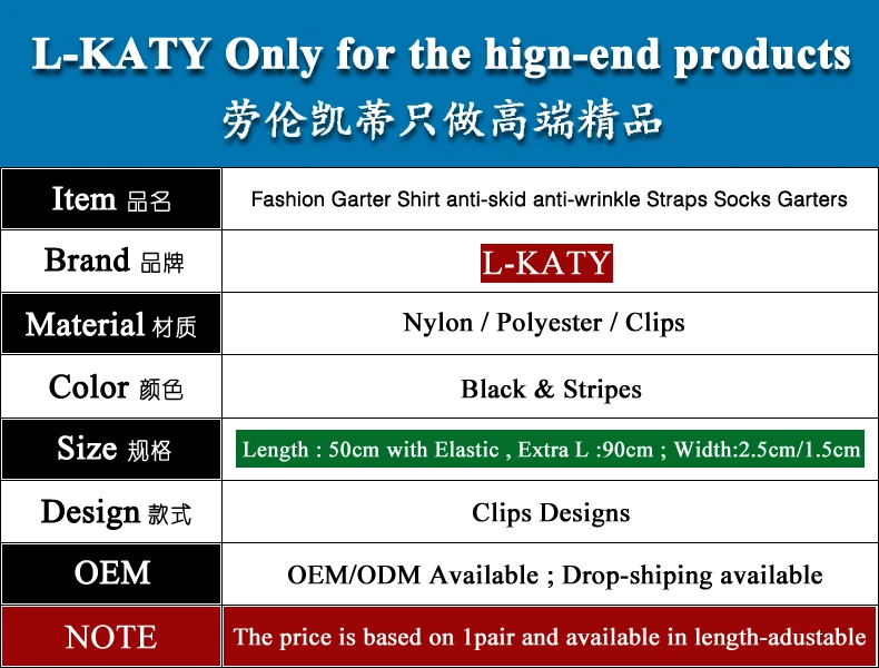 Shirt Stays Garter Technics:Elastic & Length-adjustable