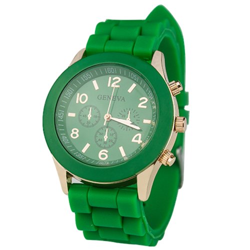 -. Title : Unisex Geneva Silicone Jelly Gel Quartz Analog Sports Wrist Watch (Dark Green)