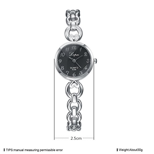 -. Feature : SIZE: Watchcase Diameter: 2.5 cm (0.98") & Watchcase Thickness:0.7cm (0.28") & Band Length (Included the case):20.0cm (7.90") & Watchband Width: 1.5cm (0.59") & Watch Weight: 30.0g / Unique Design: Round shape watch, analog display, combine fashion and casual style / A fashion watch and a great decoration to match your clothing as well / It's an excellent gift for anniversaries, graduations, birthdays, or just as a surP.R.Ise to remind that special someone how much you care. It brings an elegant and graceful look to any special occasion. / Not waterproof, please don't soak it into water. Don't wear it while taking shower or swimming.
