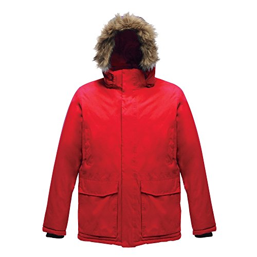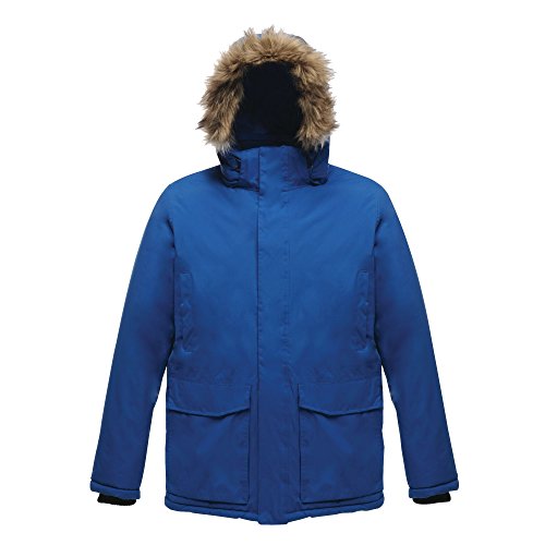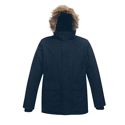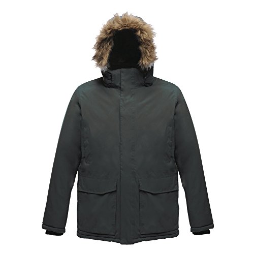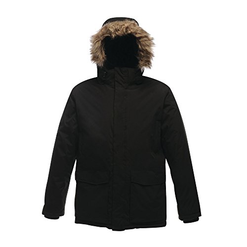 Binding : Apparel Product Description Waterproof Hydrafort 5000 fabric with Thermo-Guard insulation. Windproof build. Taped seams. Polyester lining with strategic warm fleece panels. High loft polyester padding. Detachable hood with adjuster and removable faux fur trim. Stormflap with hook and loop fastening. Adjustable waist shockcord. 2 chest pockets. 2 lower pockets and 2 lower cargo pockets. Internal pocket. Regatta Mens sizing (chest approx): XS (35-36in), S (37-38in), M (39-40in), L (41-42in), XL (43-44in), XXL (46-48in), XXXL (49-51in), XXXXL (52-54in), XXXXXL (55-57in). 0