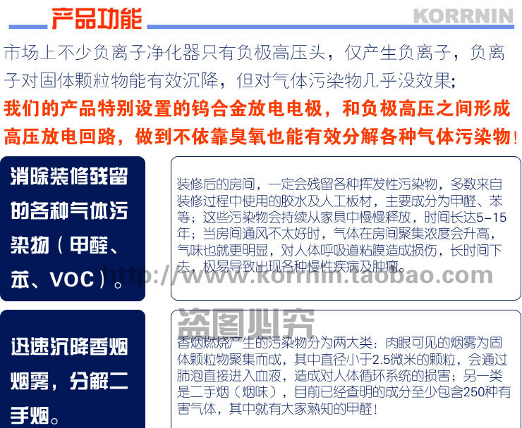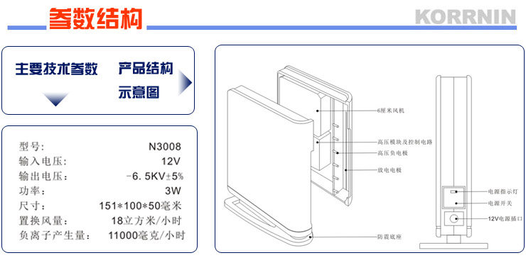 1.柯瑞林N3008负离子空气净化器是靠高压负离子来净化空气的,无任何耗材更换,使用起来更省心。
