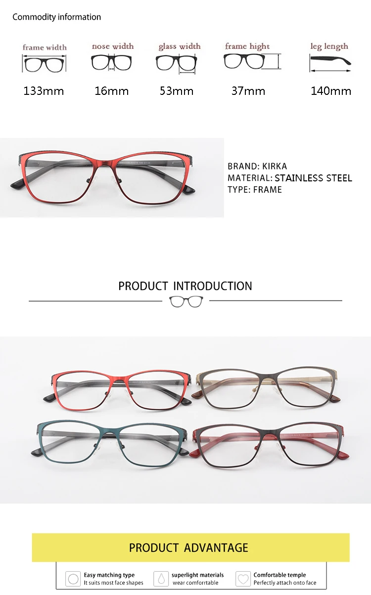 Name:Kirka High Quality Brand Fashion Women Metal Optical Glasses Frame