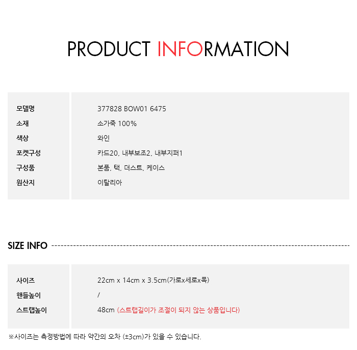 구성품본품, 택, 더스트, 케이스
