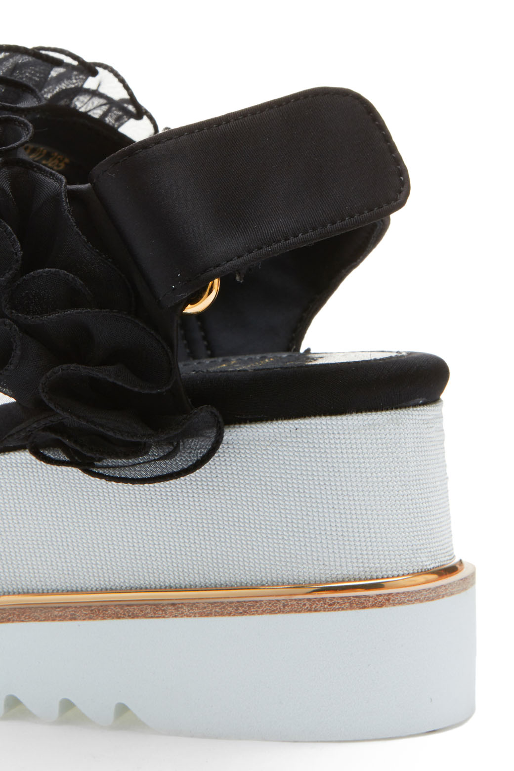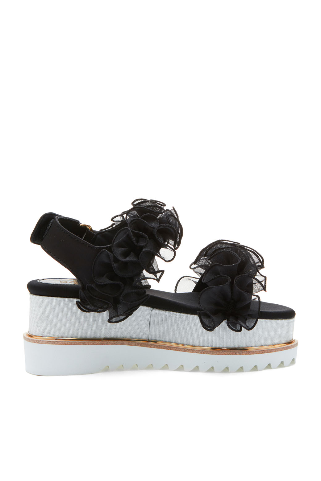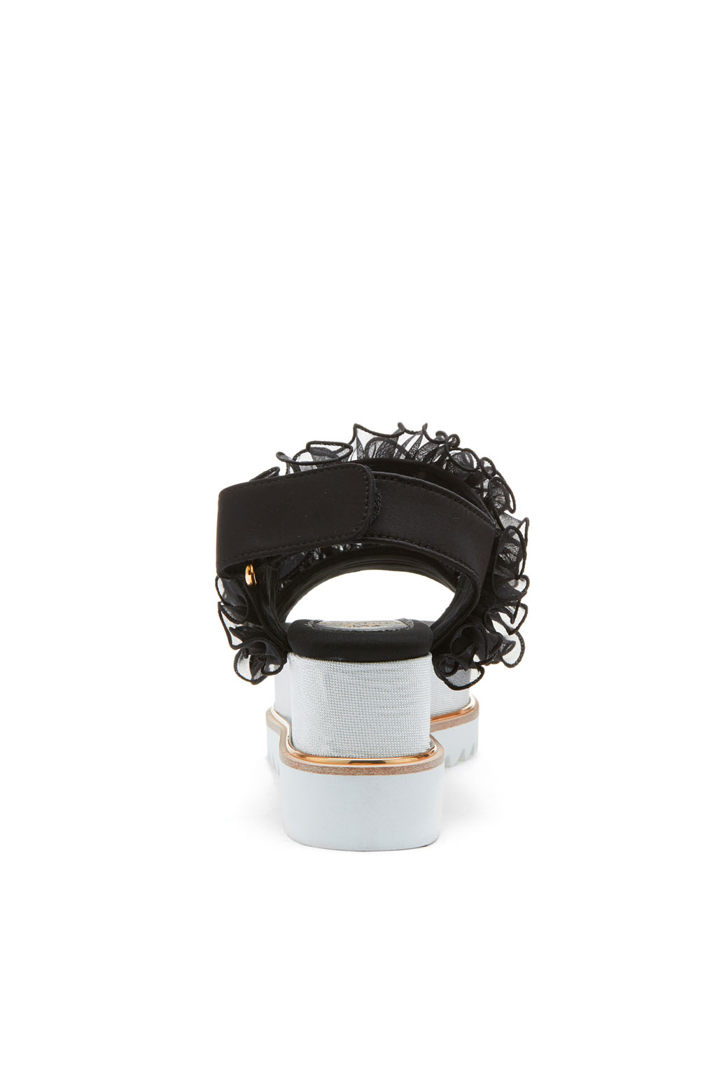 - 동일한 컬러의 사랑스러운 러플 장식이 포인트인 샌들.- 러플 장식의 로맨틱한 무드와 캐쥬얼한 워커창으로 유니크한 조화가 돋보이는 디자인.- 노방인타 러플의 볼륨감으로 조화로운 포인트.- 러블리하면서도 트렌디하게 완성시켜주는 아이템.- 가보시:4.5cm