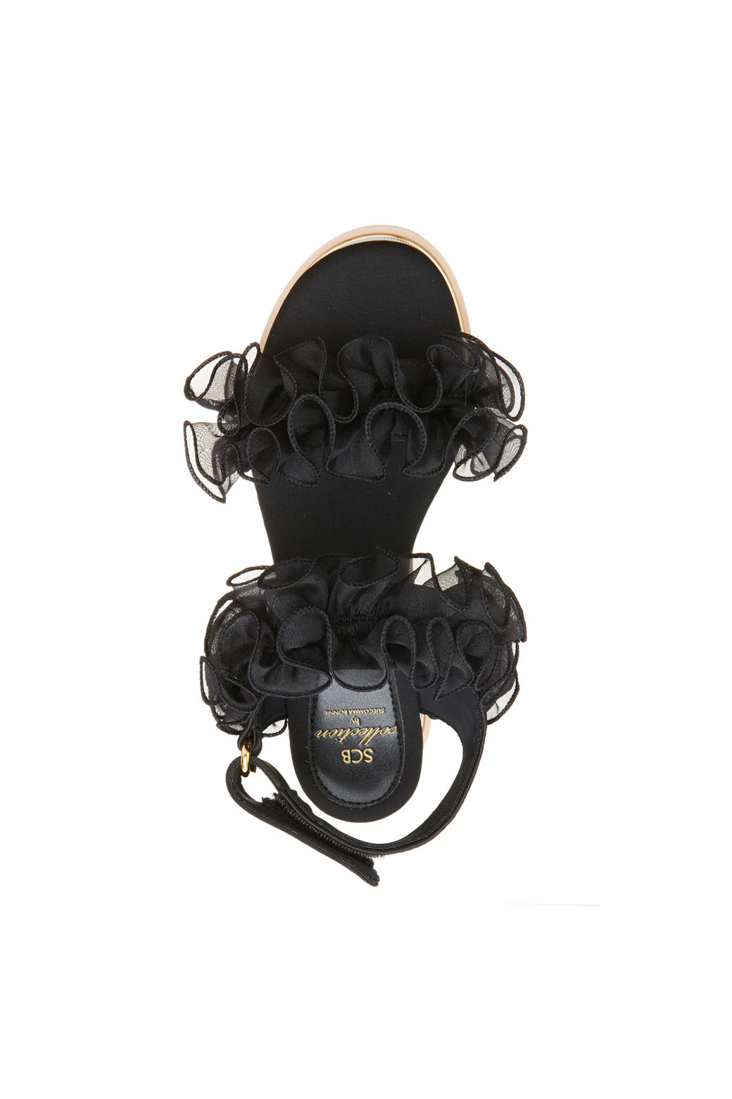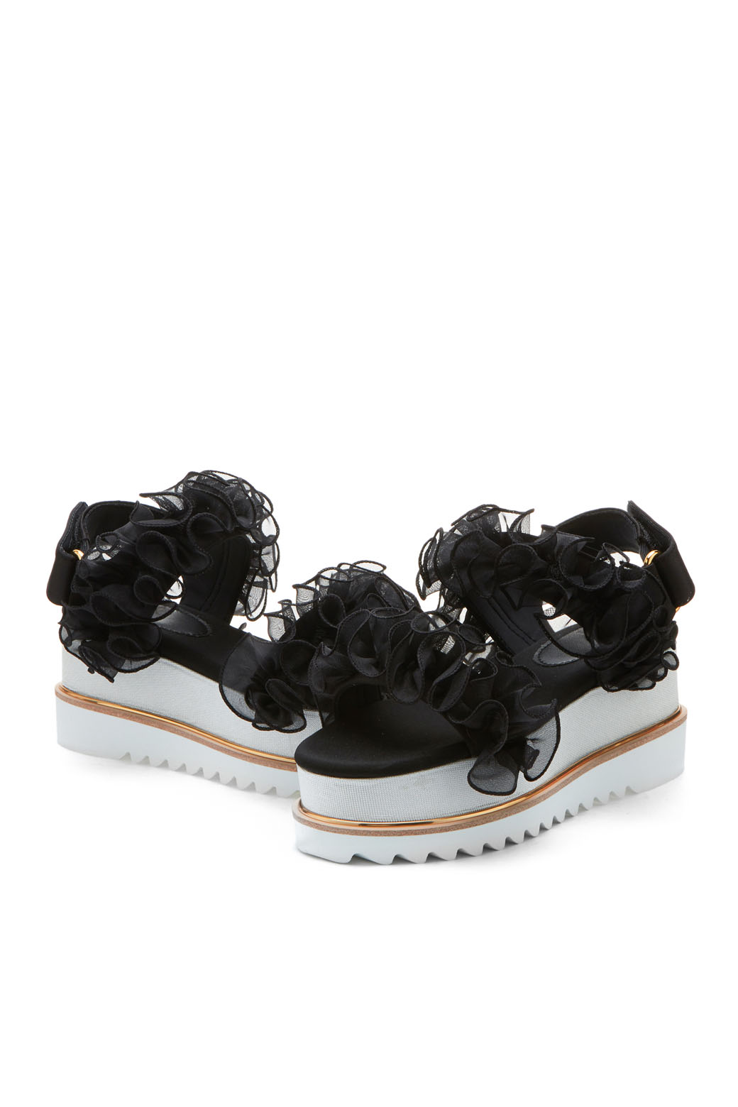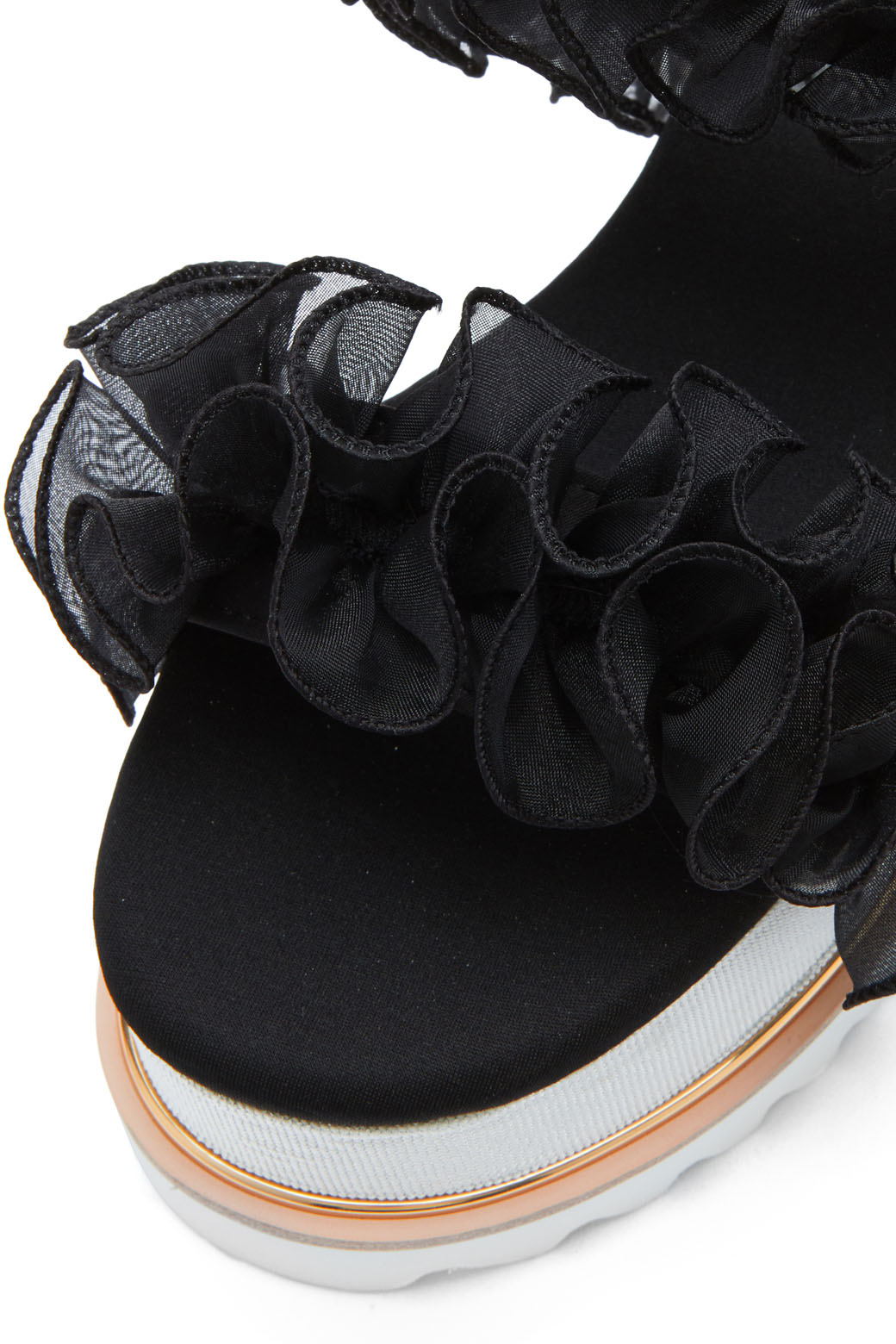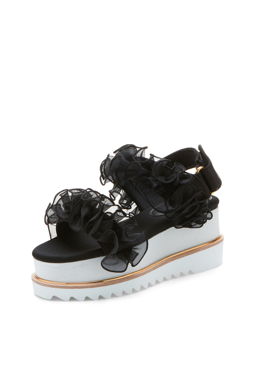 - 동일한 컬러의 사랑스러운 러플 장식이 포인트인 샌들.- 러플 장식의 로맨틱한 무드와 캐쥬얼한 워커창으로 유니크한 조화가 돋보이는 디자인.- 노방인타 러플의 볼륨감으로 조화로운 포인트.- 러블리하면서도 트렌디하게 완성시켜주는 아이템.- 가보시:4.5cm