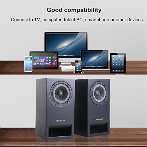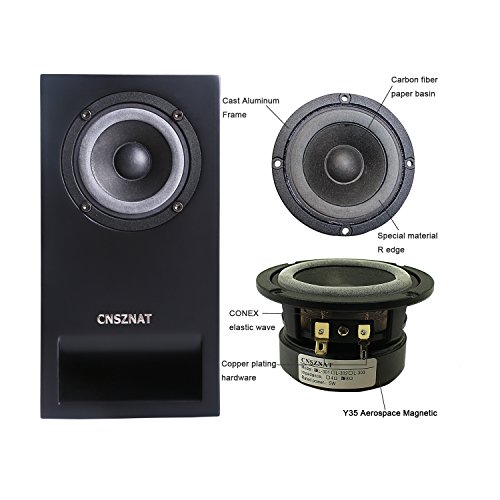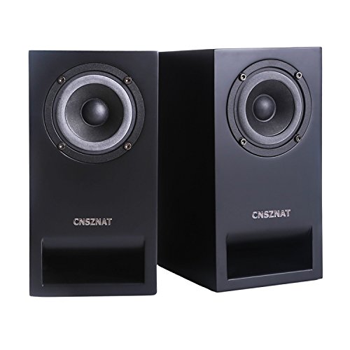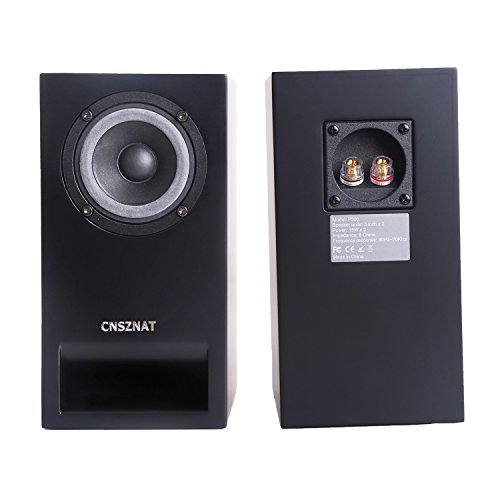 -. Feature : DESIGN - Wood Cabinets are finished in matte black with baking varnish, which has elegant,stylish and classic look, while small and compact cabinets save more space and easily blend into your listening environment. / The timbre is outstanding - Perfect the vocals and dialogue of your favorite music and movies with the CNSZNAT Hifi speaker. Mid-frequency sound full and comfortable, high-frequency clarity and detail rich, sound authentic, sweet and clean. Low-frequency is more punchy compared with other hifi bookshelf speakers in same size. / Perfect details process - Labyrinthine phase reversal tube design make sound more mellow; built-in acoustic foam yielding clear sound. Built- in the divider by sophisticated design, so that the sound is more resistant to listening, more balanced, never bored. It is widely compatible with all kinds of amplifiers and perfectly match with tube amplifier. / Good compatibility-It fills small to midsize rooms, such as home theatre, office or art gallery. And it fits any indoor sound source application, including TV, computer, tablet PC, smartphone or other devices. / Warranty-The product includes 18-month warranty.