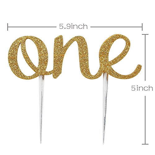 Brcohco 1st First Birthday One Cake Topper Decoration Single Sided Double Gold Glitter