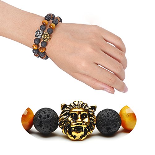 Yel and Elf Lion Head Bracelet for Men Women Lava Stone Diffuser Energy Elastic Wrist Cuff Tiger Eye Bracelet