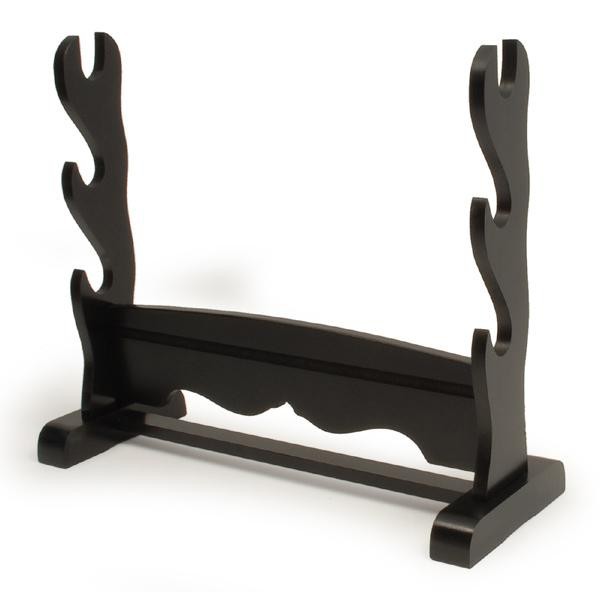 | 黒塗り刀掛台、据え置き型、三本用。 |