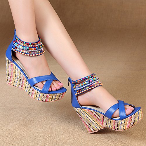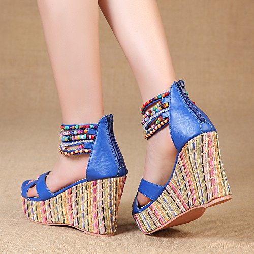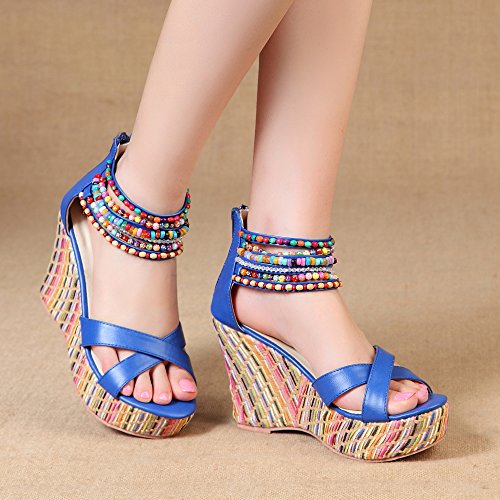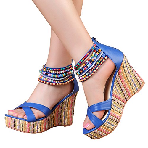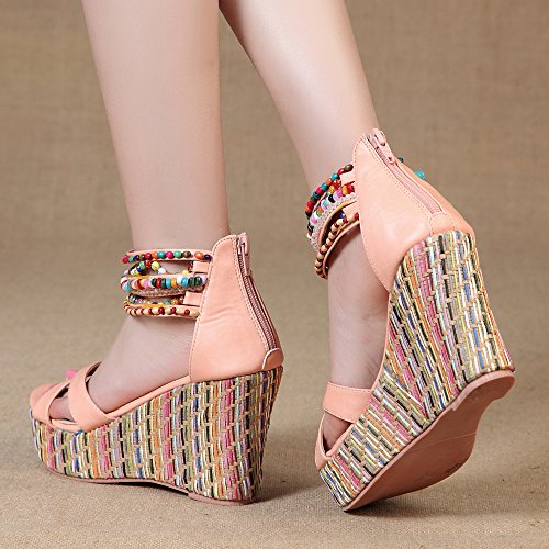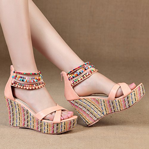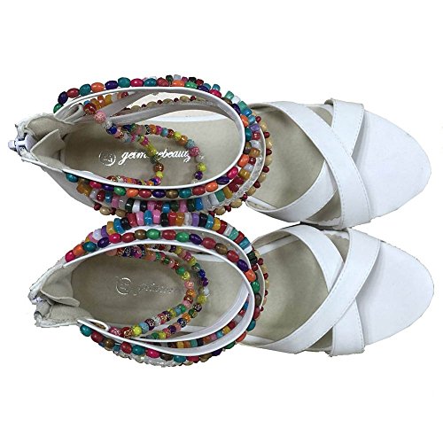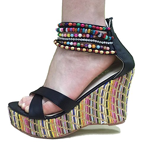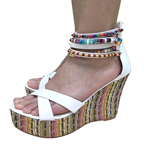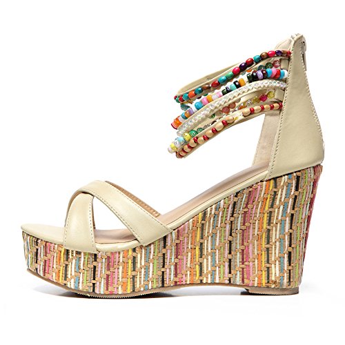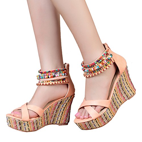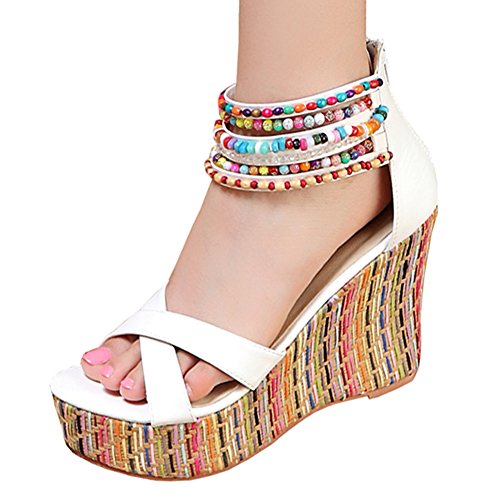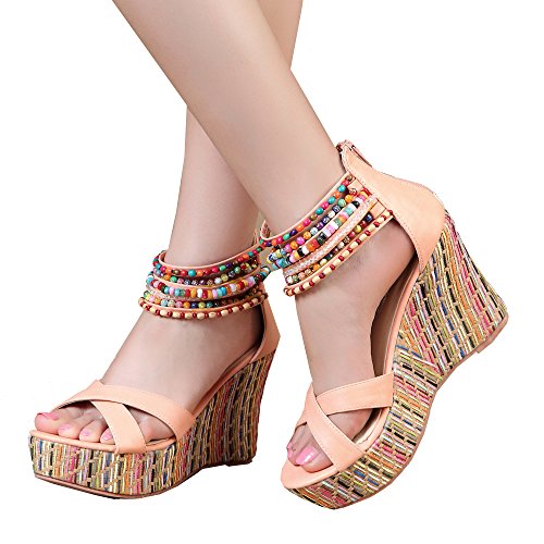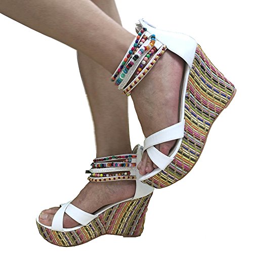 Getmorebeauty Women's Weave Wedge With Pearls Across The Top Platform High Heels