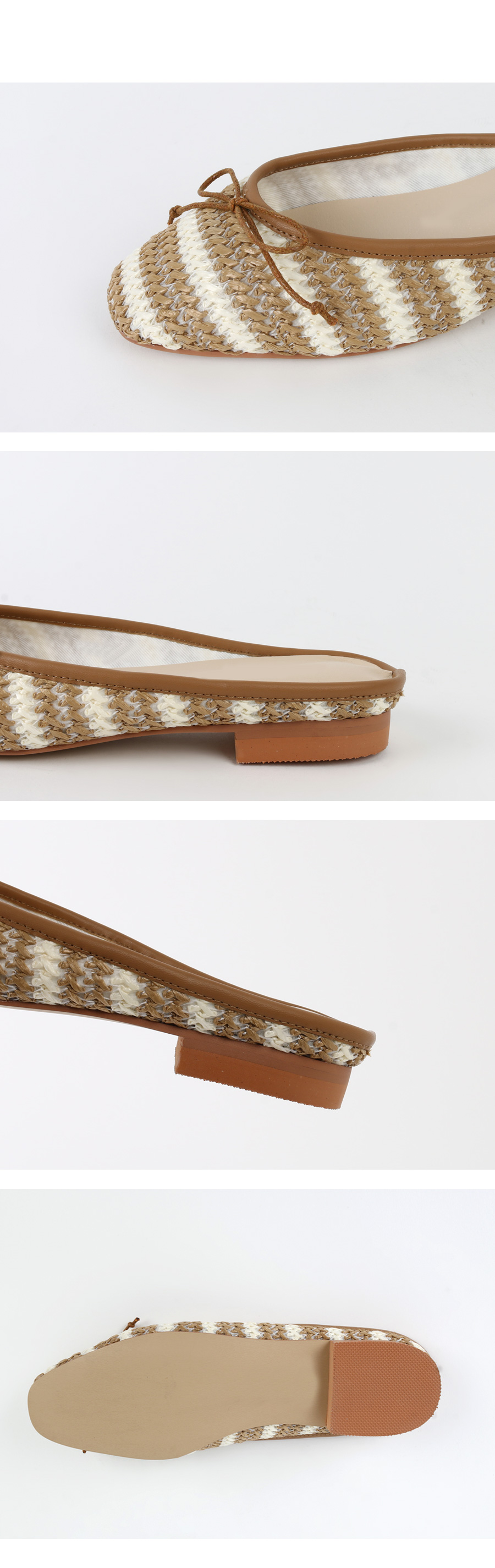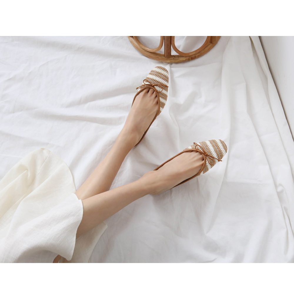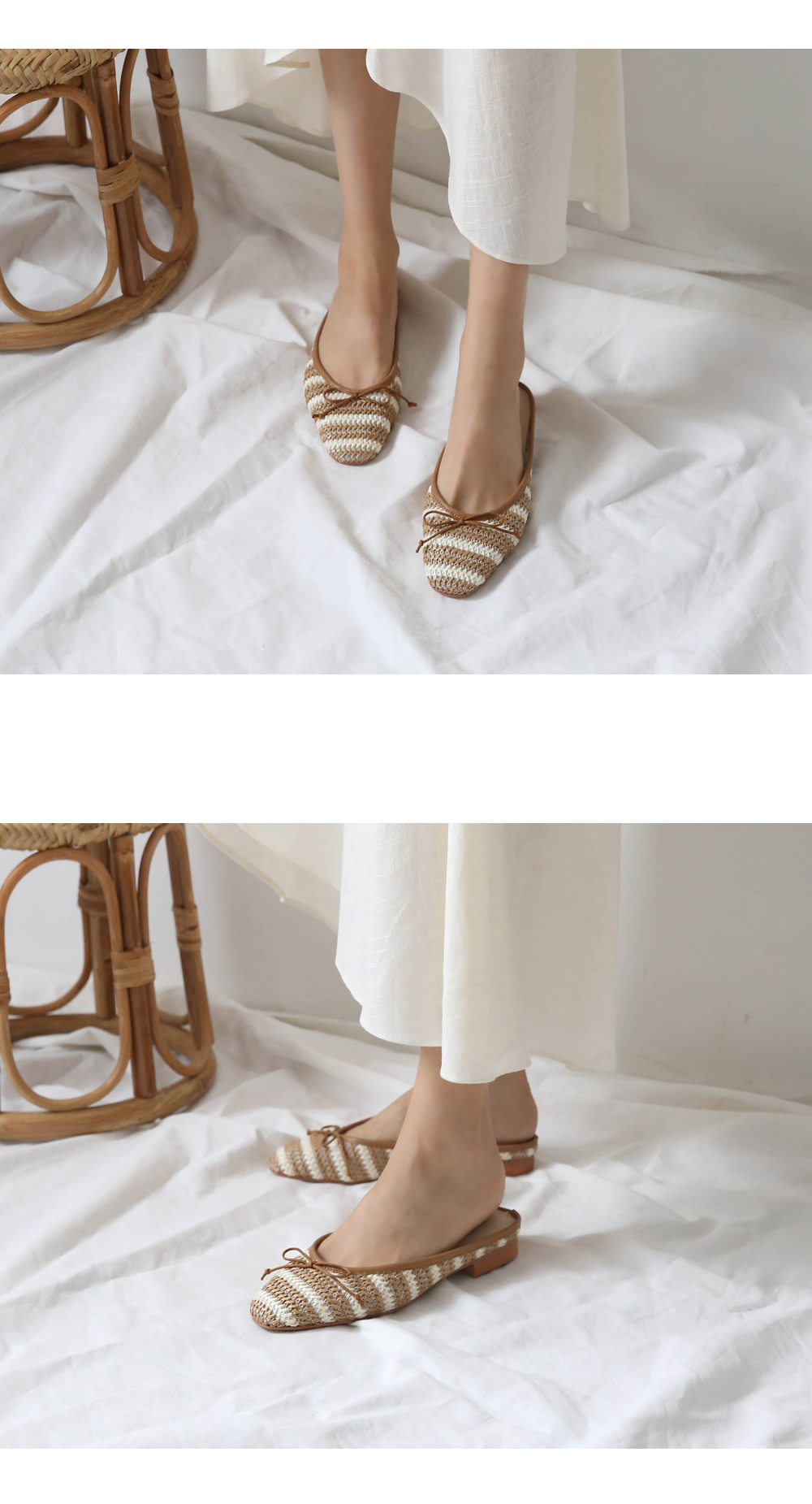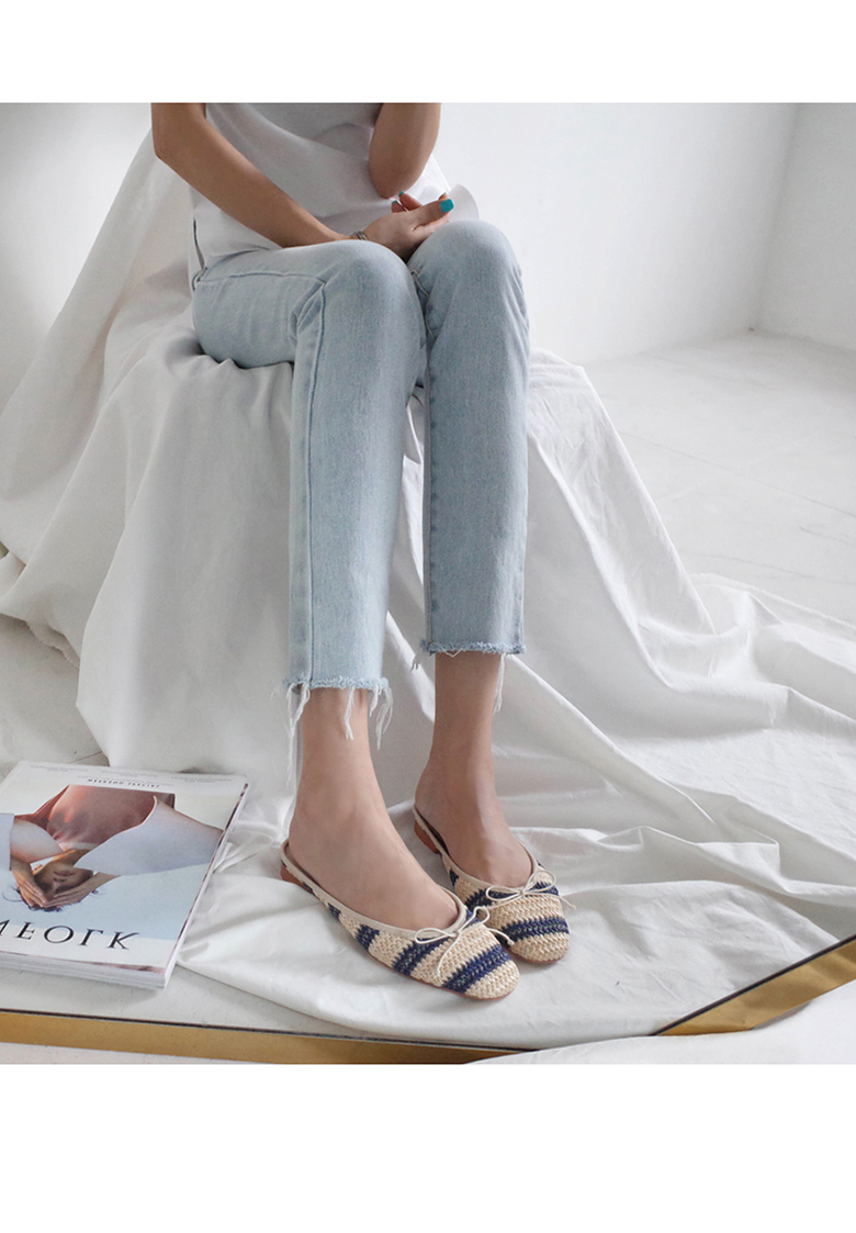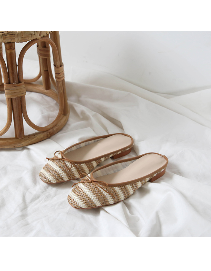 촘촘히 짜여진 라탄 소재로 구성된 슬리퍼입니다.