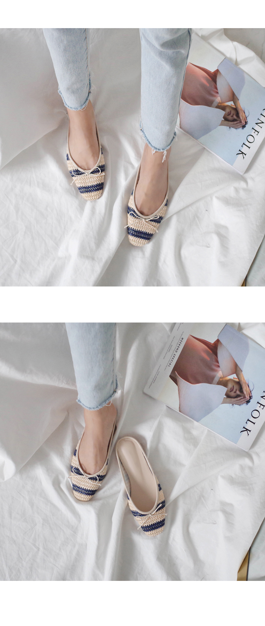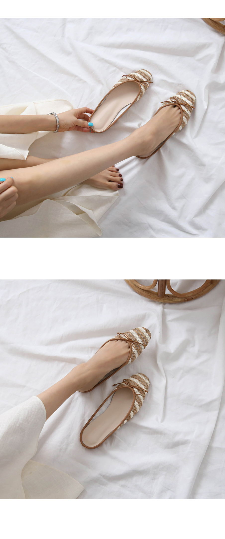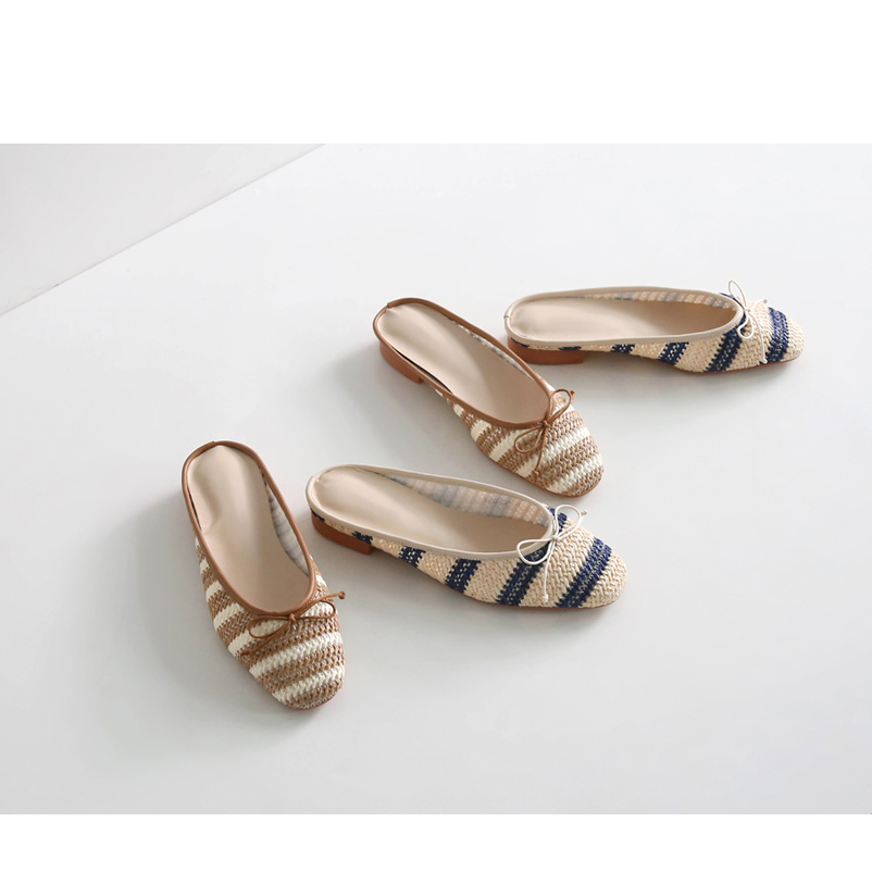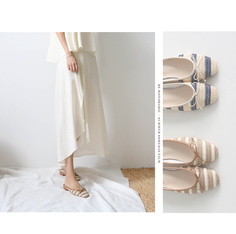 촘촘히 짜여진 라탄 소재로 구성된 슬리퍼입니다.
