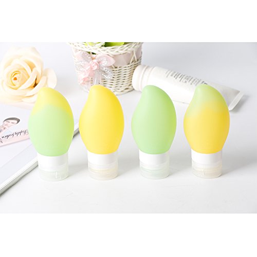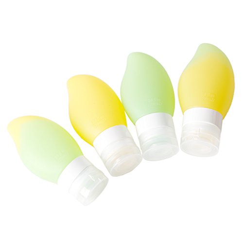 RainFly Protable Soft Silicone Travel Bottle Set Mango Shape Bottle Leak Proof Design Perfect for Cosmetics Shampoo Lotion Conditioner (78 ml / 1.23 oz, Pack of 4)