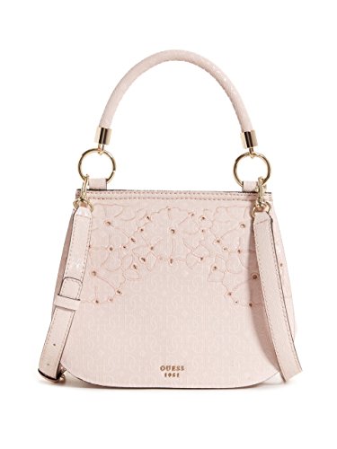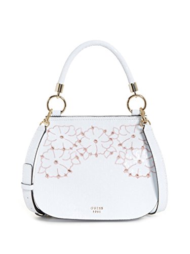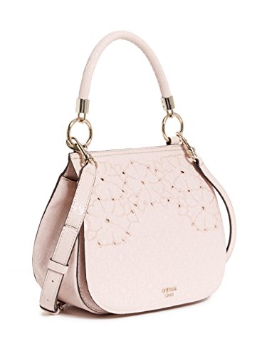 An embossed Quattro G logo pattern and adorable embroidery add a perfect feminine touch to this sweet satchel. Features a rolled top handle and foldover flap design with eyelet accents. Interior features a front slip pouch pocket, a back zipper pocket and three multifunctional slip pockets. Snap-button closure.